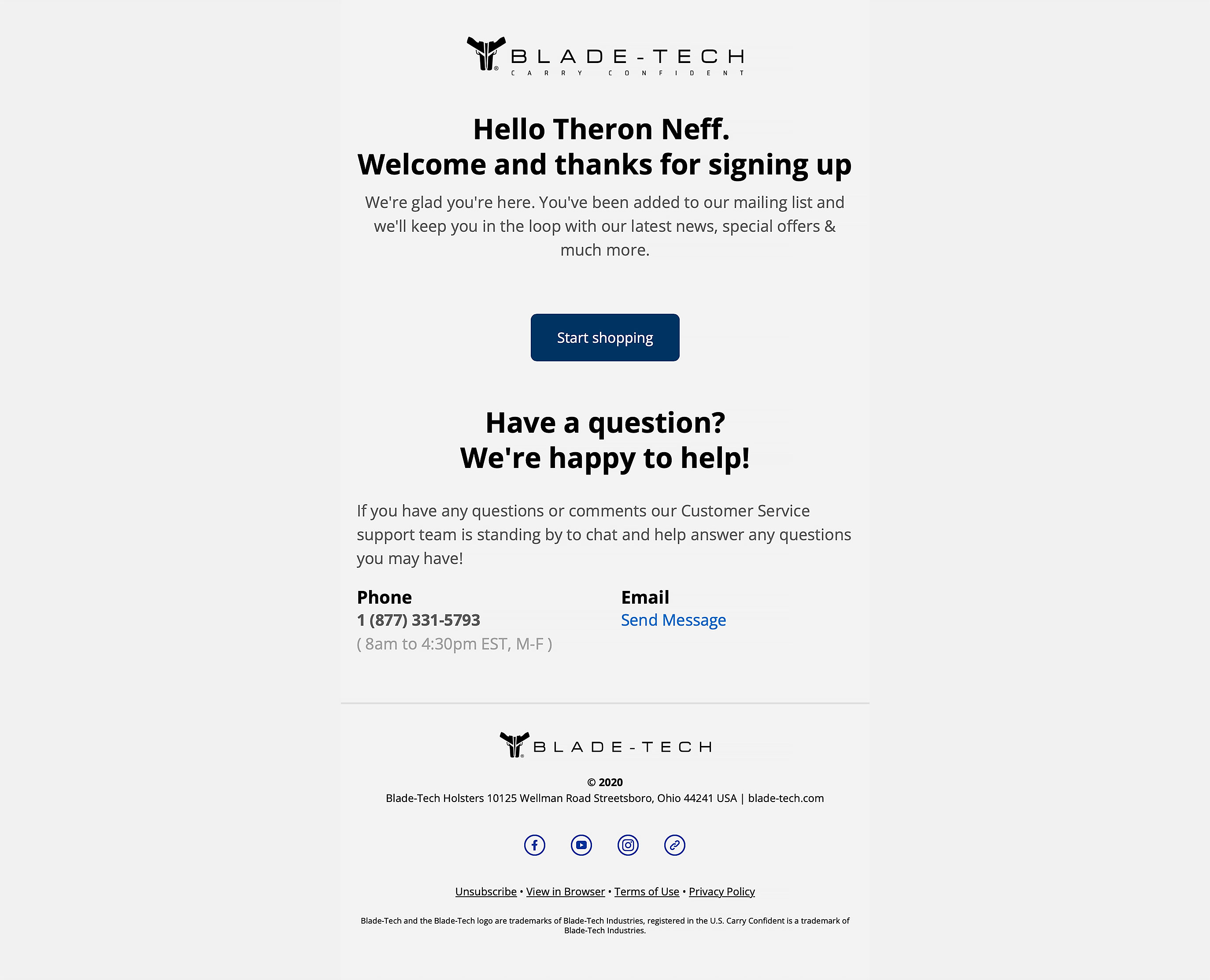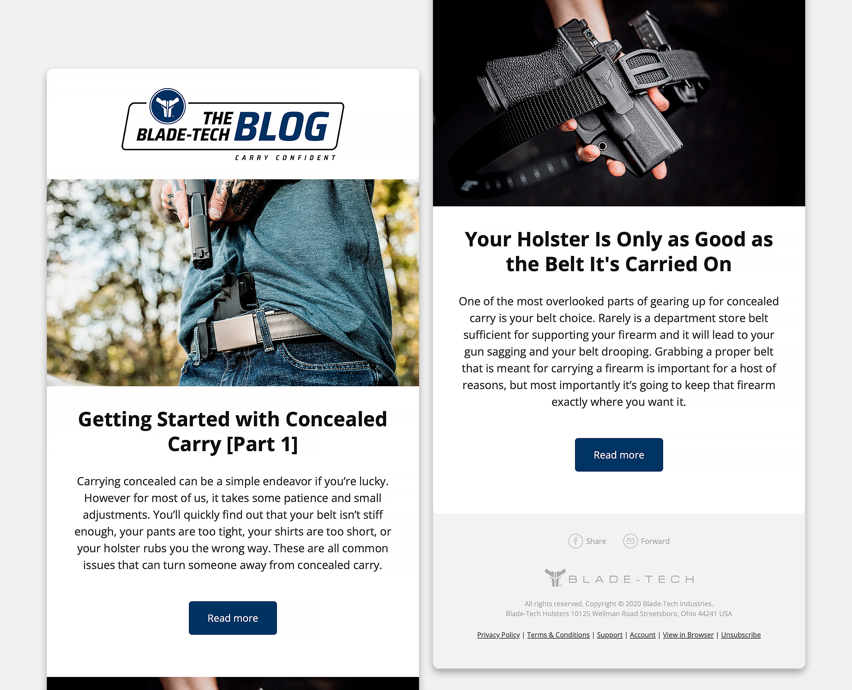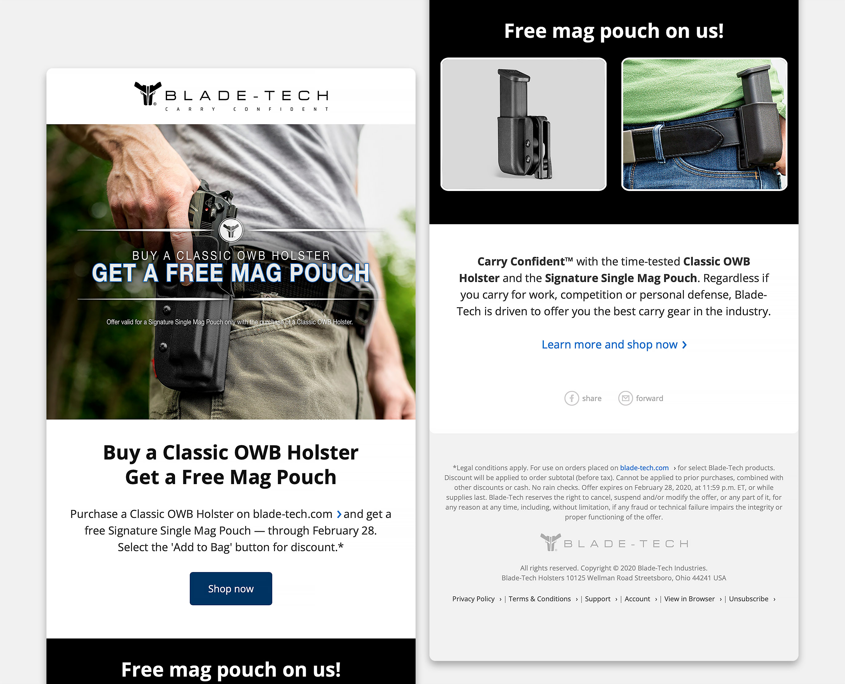 Blade-Tech Industries, based in the Cleveland metropolitan area, is a global manufacturer of carry gear for civilian, military, and law enforcement markets. The company requested targeted, offer-based email campaigns and responsive email templates that would help drive traffic to their eCommerce store.