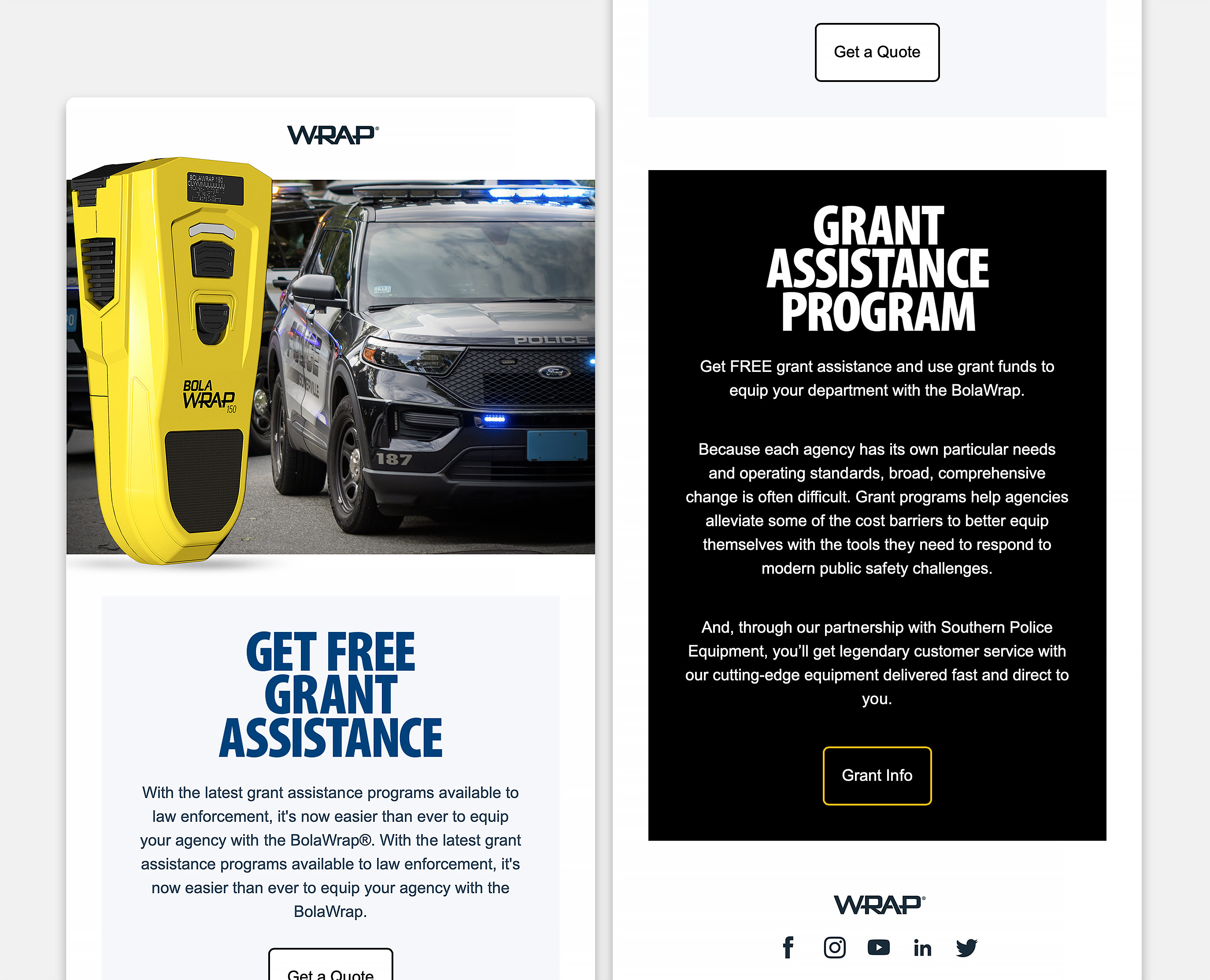 WRAP Technologies is based in the Phoenix metropolitan area and is a global leader in innovative public safety technologies and services. The company requested targeted, offer-based email campaigns and responsive email templates. WRAP wanted to convert their contacts to leads and eventually sales revenue using the Zoho CRM platform.