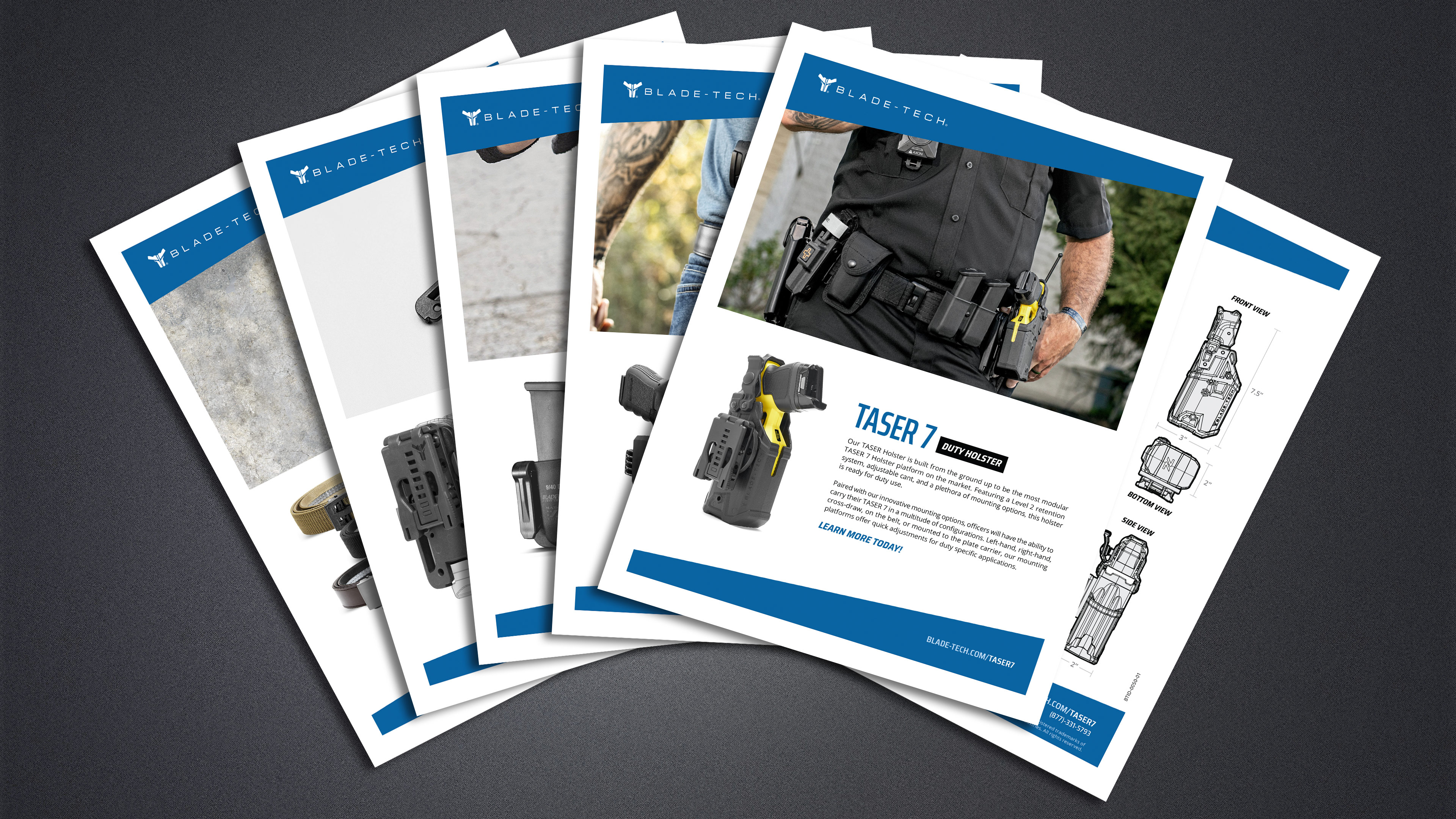 Blade-Tech Industries, based in the Cleveland metropolitan area, is a global manufacturer of carry gear for civilian, military, and law enforcement markets. The goal was to create a series of product cards to highlight all Blade-Tech products for use by distributors and government sales channels. The final deliverables would be both full-color printed and digital collateral.